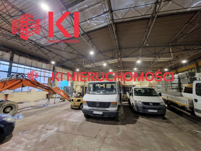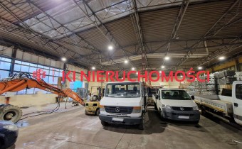 Wysoka hala przemysłowa z dużą bramą wjazdową, przystosowana do prowadzenia ciężkiej produkcji. Obiekt wyposażony w monitoring, zapewniający bezpieczeństwo i kontrolę dostępu.