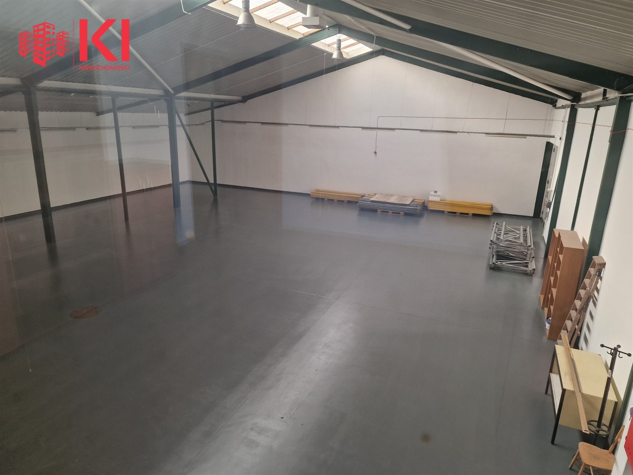 -Składa się z hali o pow. 576 m2 oraz pow. biurowo - socjalnej 141,5 m2 (czterech open space, łazienka, aneksu kuchennego),