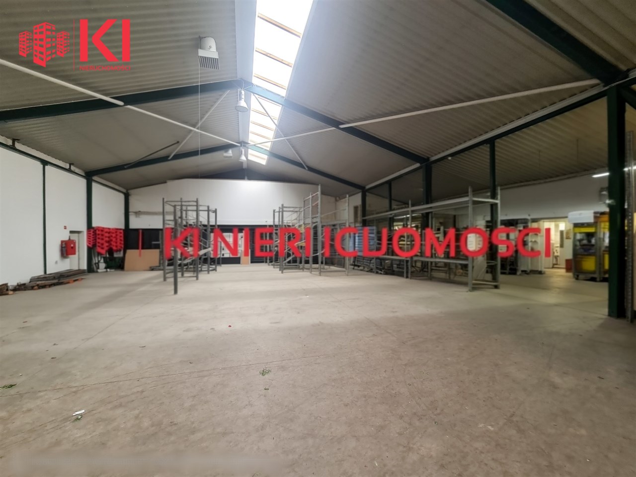 -Składa się z hali o pow. 570 m2 oraz pow. biurowo - socjalnej 130 m2 (czterech open space, łazienka, aneksu kuchennego),