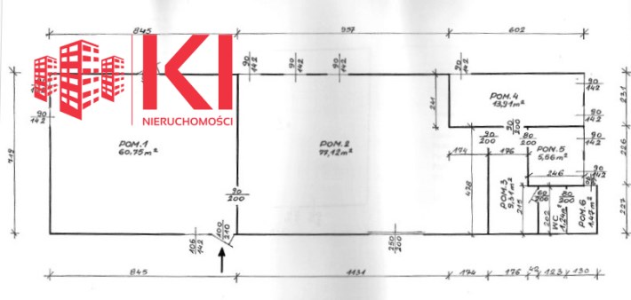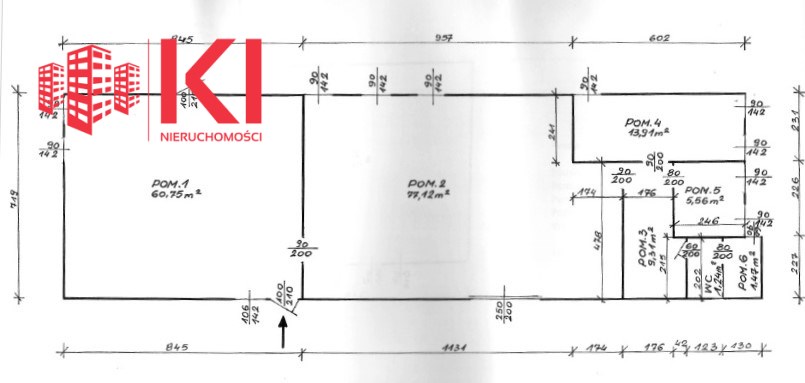 - Składa się z 2 duże pomieszczenia ( o pow. 61 m2, 71 m2), 3 mniejsze pomieszczenia, toalety oraz kuchni,